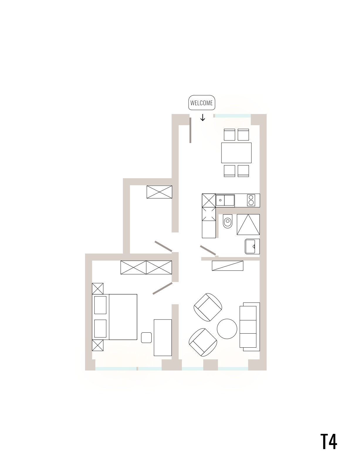 Schnapp dir einfach deinen Koffer – hier ist alles vorbereitet! Durch die Trennung zwischen Wohnküche und Wohn-Schlafraum ist dieses Apartment vielseitig nutzbar.