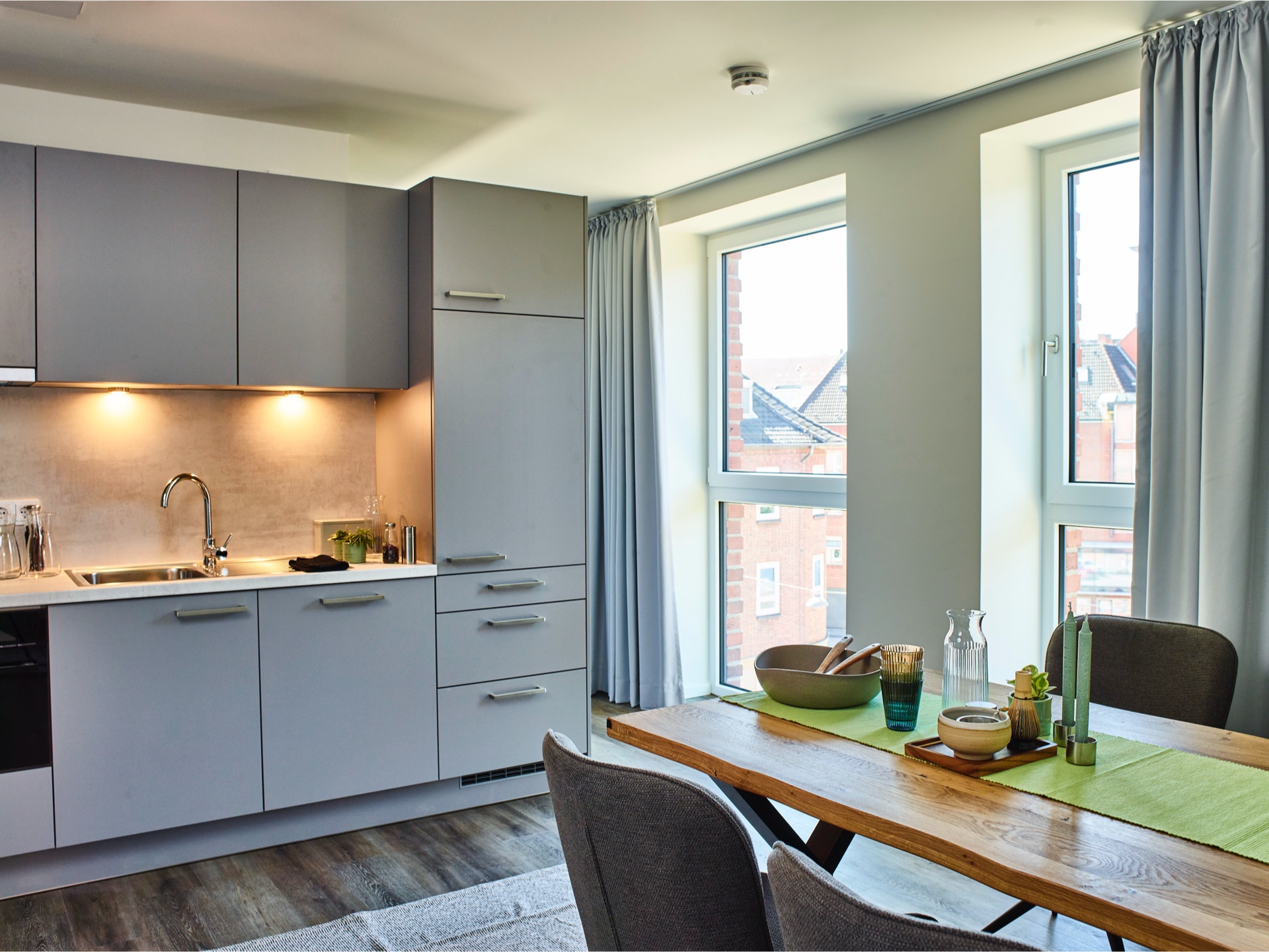 € 1.149,- bis € 1.352,- Warmmiete (inkl. WLAN, Heizung, Wasser, etc.). Und für Studierende und Azubis reduziert sich deine Miete um € 200,-.